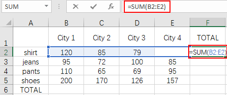 3. The formula will be filled in the cell and a window called Function Arguments will pop out. “B2:E2” means the range of calculation is from column B2 to E2 (including C2 and D2). Click OK to confirm it.
